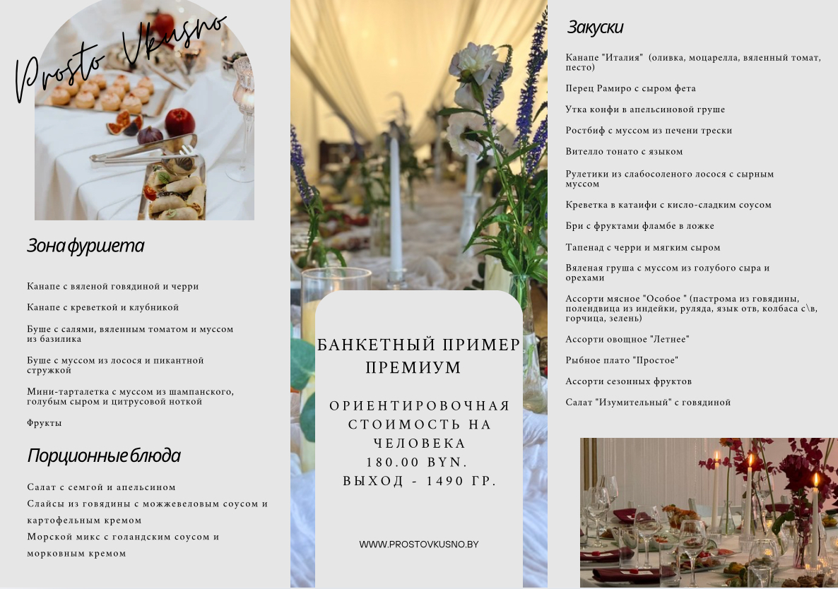 Свадебный фуршет под нашим руководством не будет мероприятием, собранным «для галочки». Здесь царят безупречная сервировка, свежайшие продукты, авторские сочетания и подача, которая впечатляет с первого взгляда. А если вы мечтаете о чем-то особенном, мы составим меню, исходя из ваших вкусовых предпочтений.