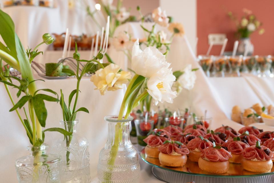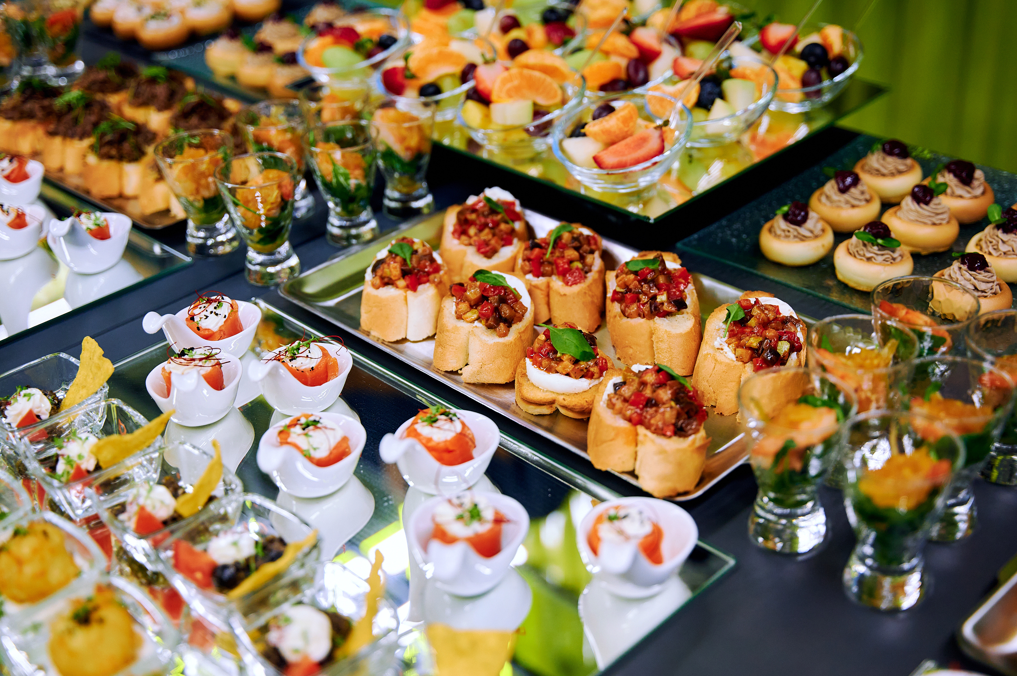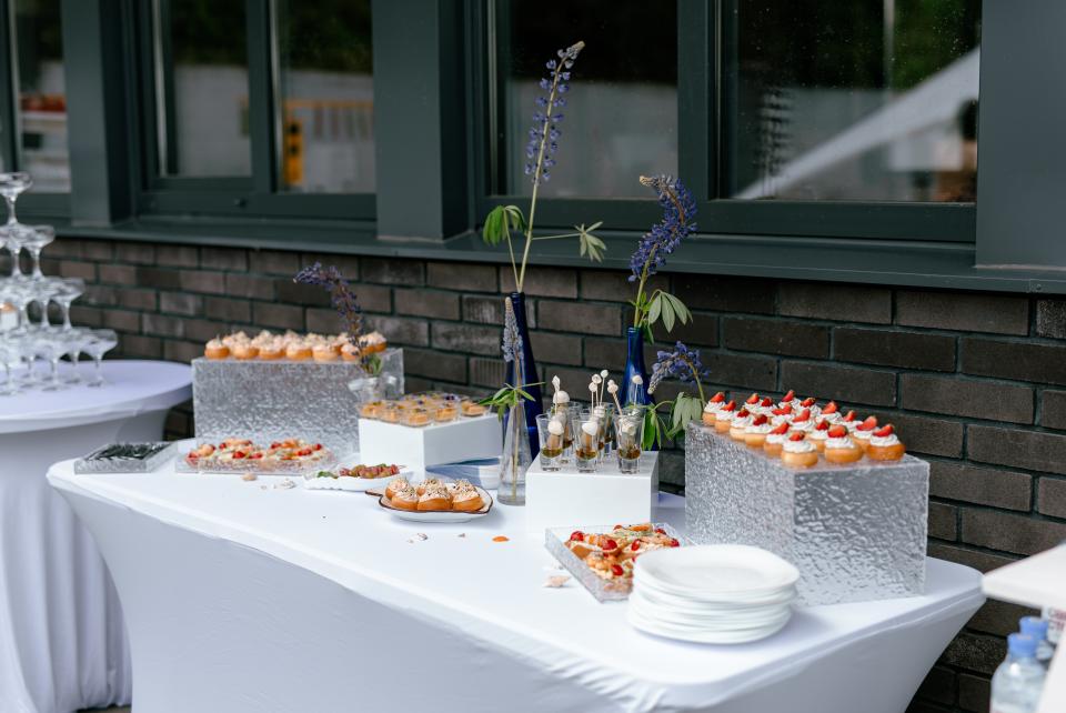 Каждый наш выездной фуршет – как маленький праздник. Даже если совсем без повода. Мы приезжаем с настроением и вкусом, которые запоминаются. Наше меню, словно калейдоскоп, будоражит яркими акцентами и может сложиться в любую картину по вашему желанию. Буше с различными начинками, вкусные брускетты или канапе, что исчезают быстрее, чем вы успеваете представить их гостям. Обширна и география фуршетов – Минск и любой уголок Беларуси. В каждой локации мы предоставим сервис и подачу, заданную стилем вашего праздника. Реализуем любой формат и воплотим в жизнь ваши пожелания.