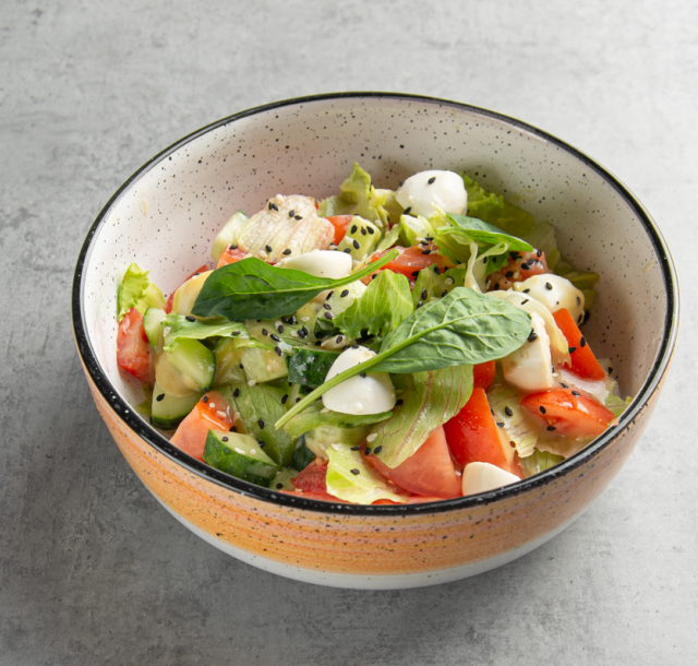 Салат овощной с моцареллой и медово-горичной заправкой