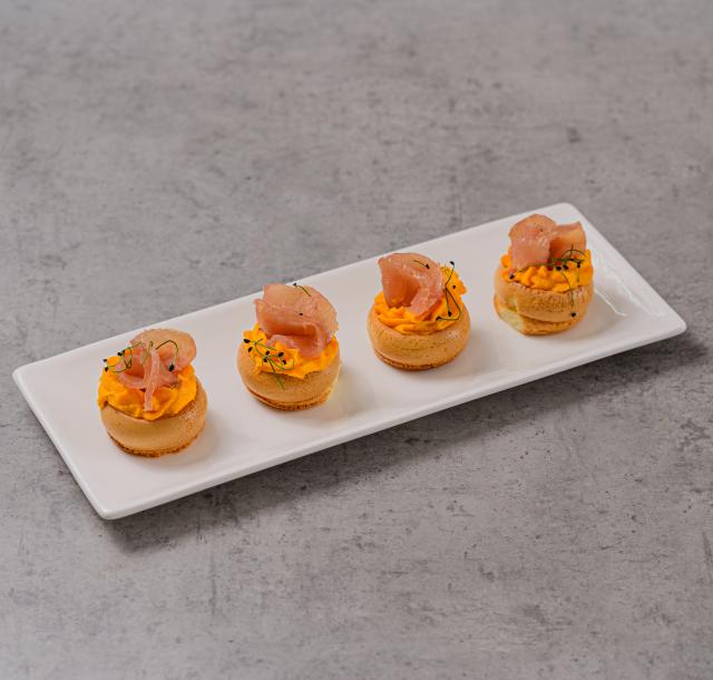 Фирменная бисквитная основа, нежный морковный мусс и вяленная индейка