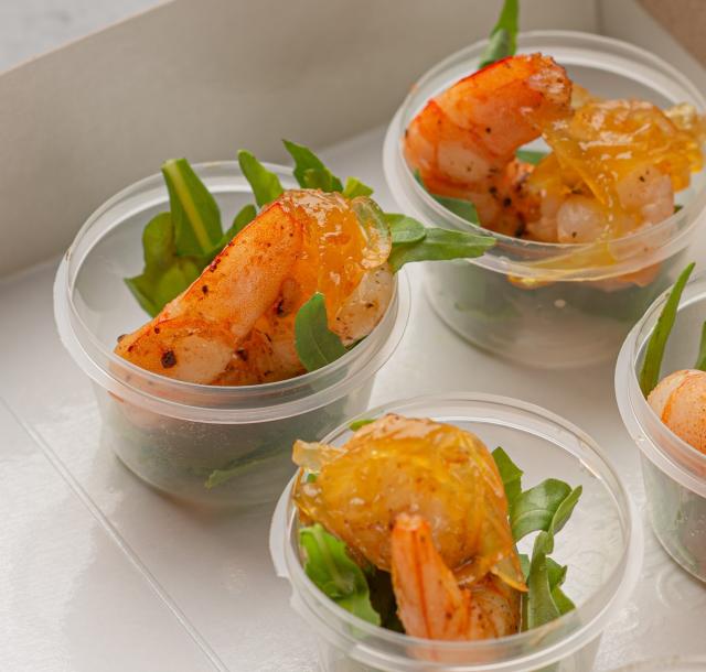 Одна из самых популярных и самых вкусных в нашем меню -креветка, обжаренная на гриле, мармелад из апельсина, лука, с добавлением белого вина и розмарина, свежая руккола, делающая эту закуску еще более целостной.